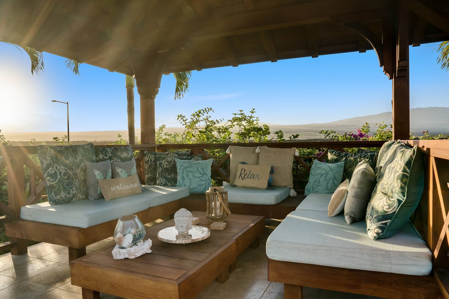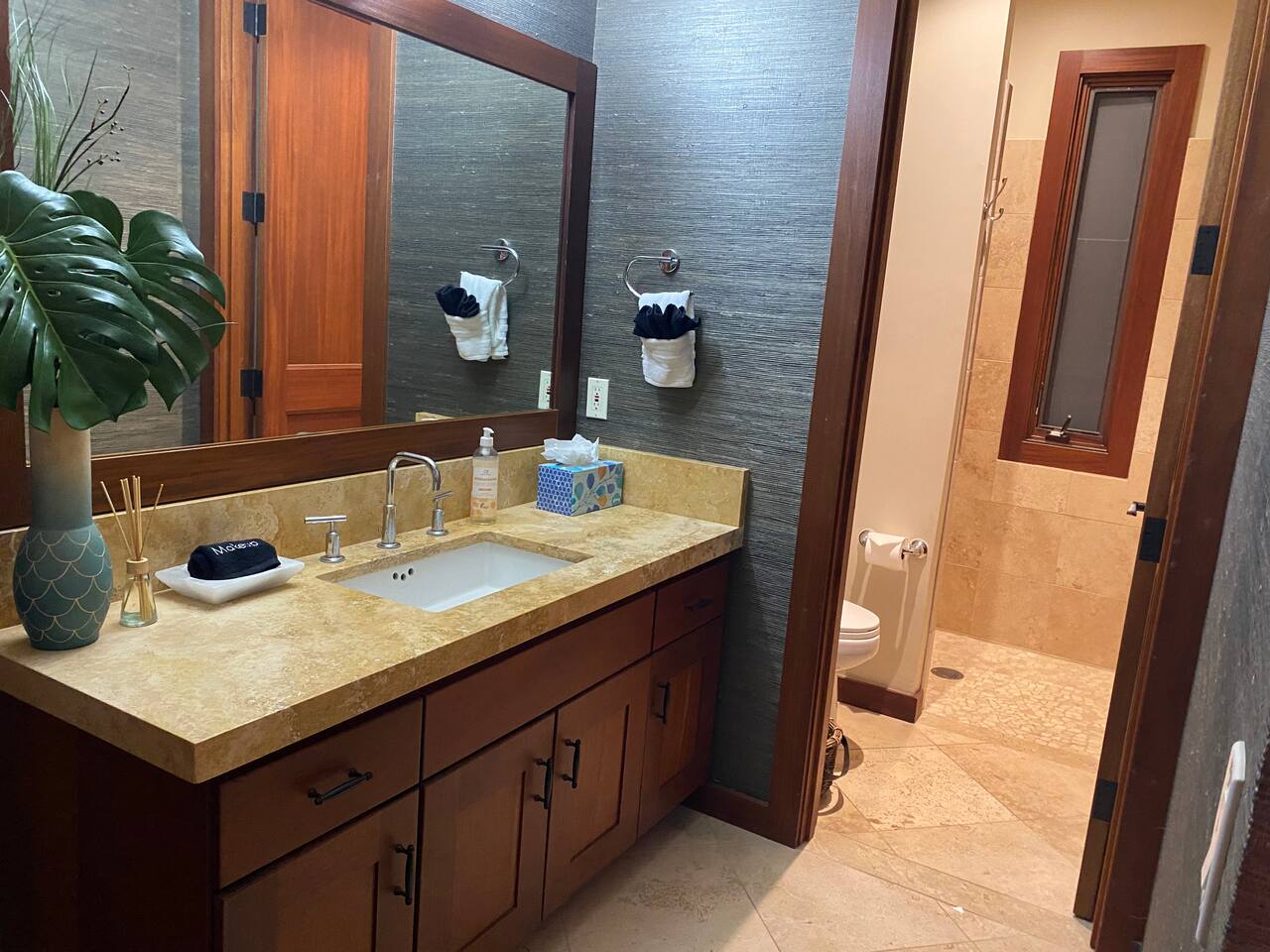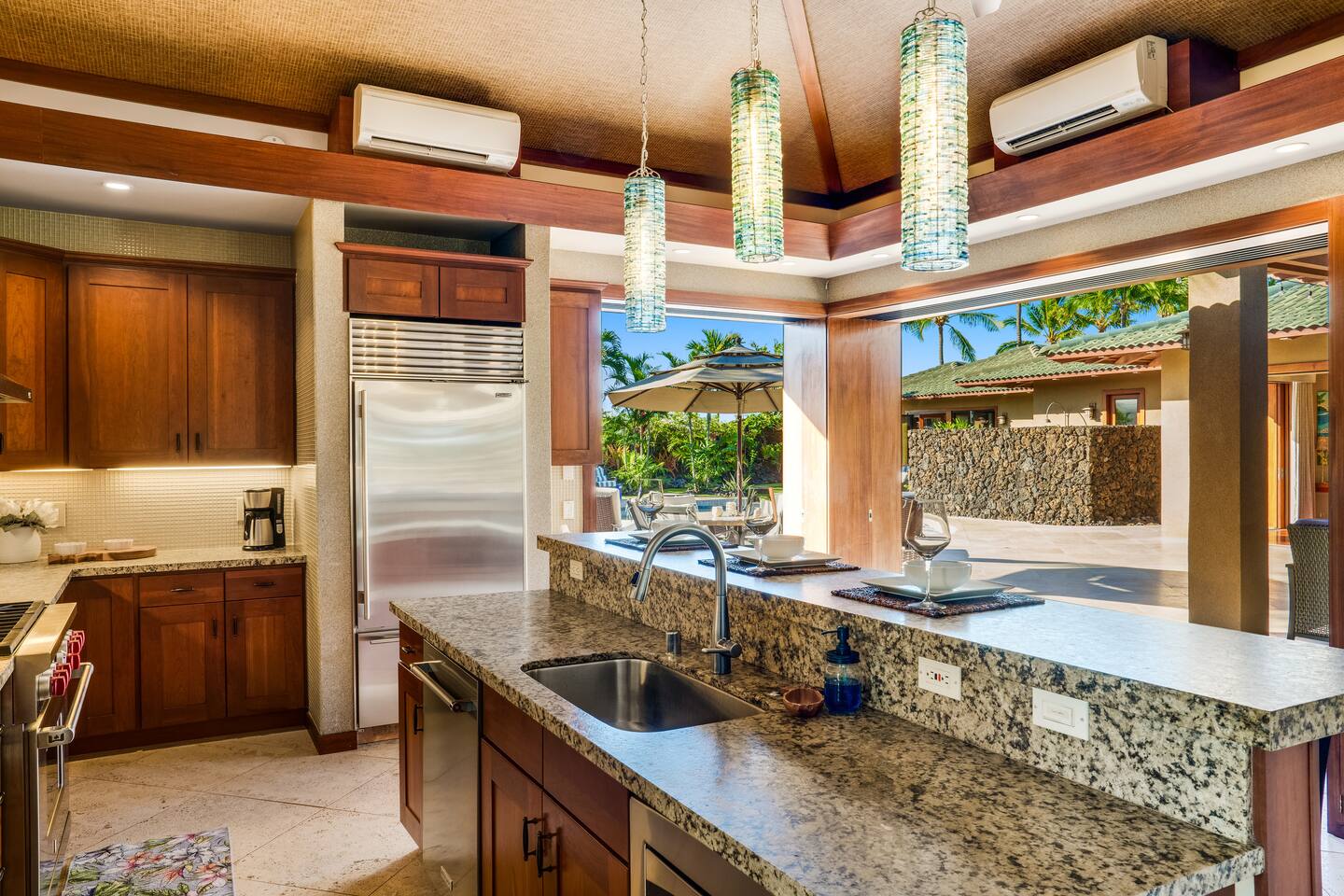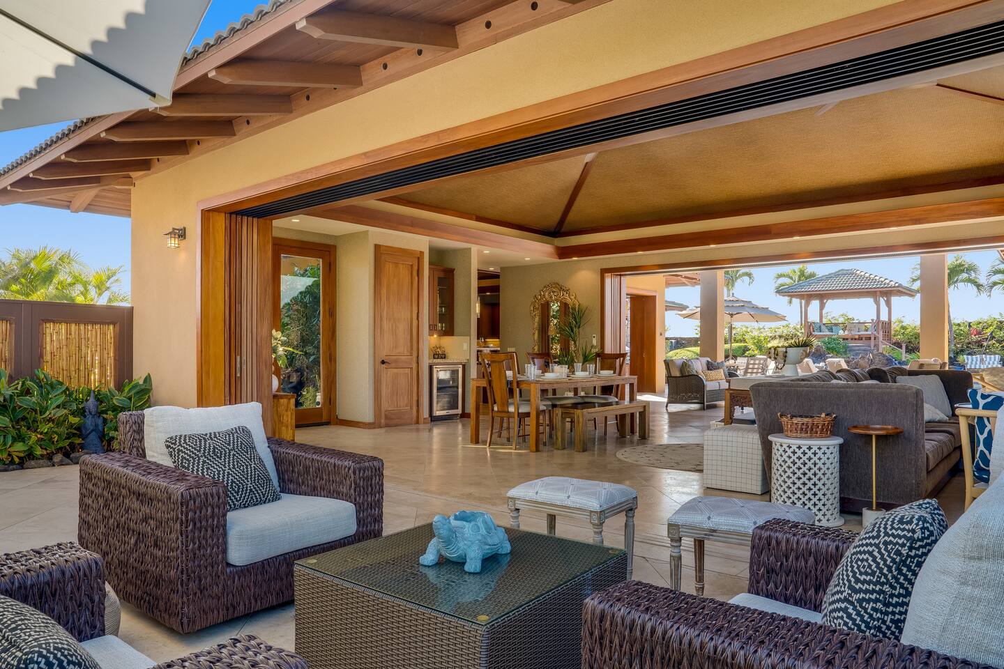 Welcome to Hale Mele — A Premier Hawaiian Retreat on the Big Island’s South Kohala Coast Escape to Hale Mele, an extraordinary luxury residence situated within the exclusive, gated community of Champion Ridge on the radiant South Kohala Gold Coast. Recognized by Condé Nast Traveler as one of 2024’s Top 27 Family-Friendly Airbnbs, this refined, single-level Polynesian-style estate spans nearly 4,000 square feet, offering an exceptional blend of island elegance, modern comfort, and breathtaking natural beauty. Property Overview Designed with privacy and relaxation in mind, Hale Mele features four spacious ground-level bedrooms, five full bathrooms, two half baths, and two private outdoor showers. The thoughtful layout includes: • Two primary suites with king beds, one of which offers an additional daybed for a child. Both suites offer a private outdoor shower. • A third bedroom with a king bed. • A fourth bedroom with two full-size beds. • A versatile bonus/game room with a queen-size sleeper sofa featuring a memory foam mattress. • Infant-friendly amenities, including a Pack ‘n Play, booster seat and infant tableware. The home’s two-bedroom pods connected via a pass-through door offer both communal gathering spaces and private retreats — ideal for multi-generational families or groups of friends. Indoor-Outdoor Island Living The heart of Hale Mele is its open-concept great room, seamlessly extending to a private outdoor oasis. At its center is a heated 84°F saltwater pool, hot tub, and serene cascading water features framed by lush, tropical landscaping. An outdoor pavilion offers shaded seating, a bar area, a barbecue grill, and a guest bathroom — the perfect setting for sunset cocktails and al fresco dining with panoramic views of Mauna Kea volcano. Home Amenities • Air conditioning throughout the entire residence for your comfort. • Fully equipped gourmet kitchen, thoughtfully stocked with essentials including olive oil, vinegar, sea salt, pepper, and a curated selection of spices. • High-performance Vitamix blender, perfect for crafting smoothies and frozen cocktails. • Complimentary Kona coffee starter pack, a variety of fine teas, and locally crafted Hawaiian chocolates to welcome you. • Laundry essentials provided, including laundry pods and dryer sheets for your convenience. • Premium bath amenities in every bathroom, featuring shampoo, conditioner, and luxurious body wash. Exclusive Amenities Guests enjoy access to a well-appointed garage stocked with everything needed for a perfect day of island adventure, including: • Boogie boards, beach chairs, a cooler, sunshade, youth life jackets. • A variety of beach and pool toys for children. • 6-seater electric golf cart, ideal for effortless exploration of the resort. • Two electric bikes and one traditional bicycle, complete with helmets and locks. • Privileged access to the Mauna Lani Beach Club grants entry to a private white-sand cove with complimentary lounge chairs, paddle board rentals, and beachfront dining at Napua Restaurant. This access does not include use of the hotel pools or other hotel amenities. Local Activities & Excursions Indulge in world-class recreation with nearby attractions, including: • Mauna Lani North & South golf courses (contact directly for tee times and rates). • Mauna Lani Tennis and Fitness Club, featuring tennis, pickleball, a lap pool, and fitness facilities (weekly rates: $300 per person / $600 per family). • Famed beaches such as Kua Bay, 49 Black Sand Beach, Hapuna, and Mauna Kea Beach. • Champion Ridge’s open green spaces, offering fresh fruit and herb picking. • Adventure experiences including: manta ray night dives, zip lining, fishing charters, snorkeling, helicopter tours, whale watching, hiking, and surf lessons. Personalized Concierge Services Enhance your stay with optional concierge services (available at an additional cost), including: • Private airport transfers • In-home spa treatments and manicures • Kitchen pre-stocking services • Private chef experiences Please note: weddings, receptions, and large gatherings are not permitted For safety, a discreet security camera monitors the driveway. Reserve Your Private Hawaiian Escape Experience Hawaiian luxury at Hale Mele, where every detail has been thoughtfully curated to create an unforgettable island retreat. Book your stay today and immerse yourself in the magic of the Big Island.