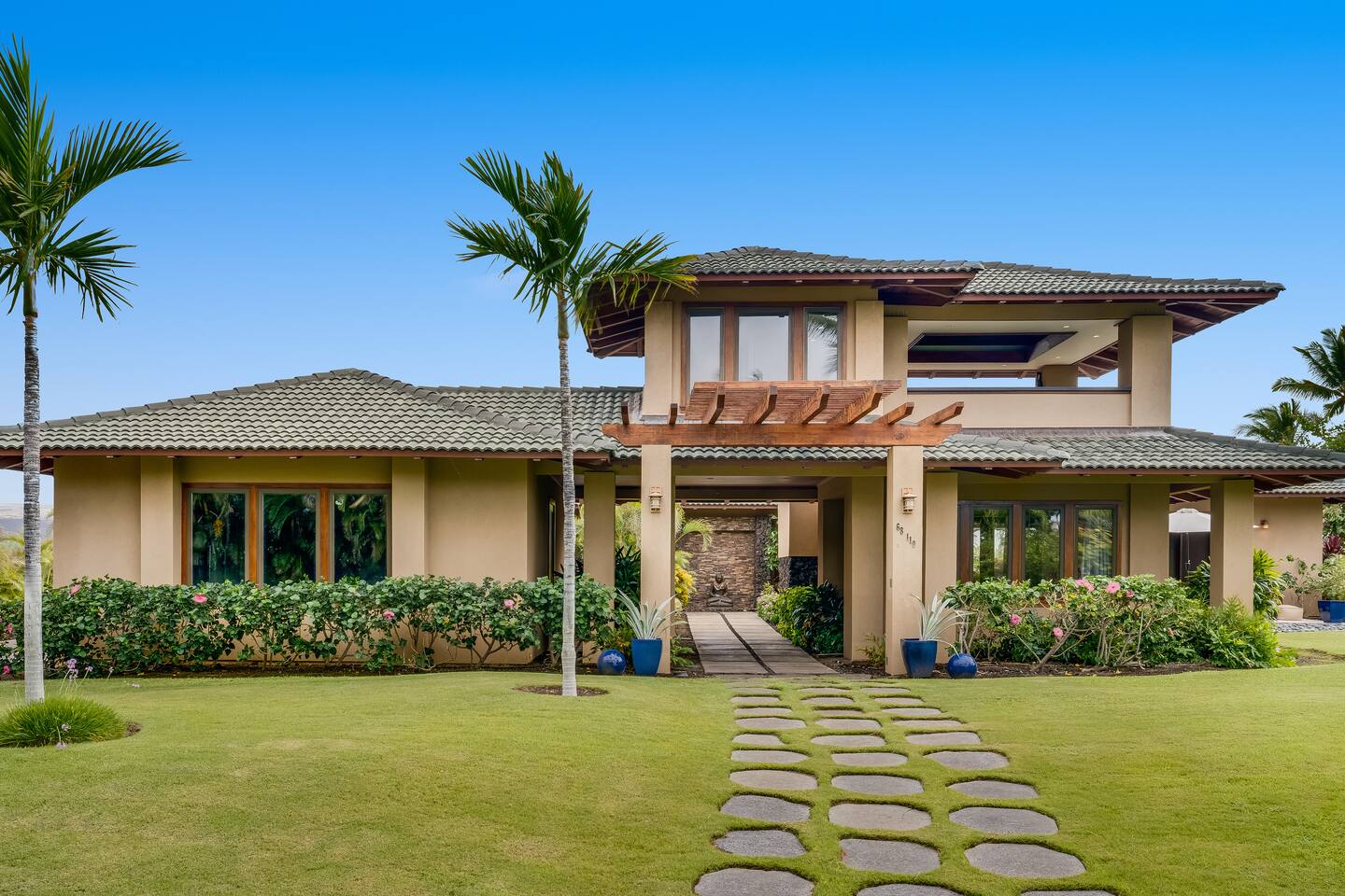 Welcome to Hale Mele, a luxurious 4,000 sq/ft Polynesian-style retreat in the gated Champion Ridge community on Kohala’s sunny "Gold Coast." This single-story home features 4 private bedrooms, 5 full baths, 2 half baths, and 2 outdoor showers. Relax in the private heated saltwater pool and spa, enjoying unobstructed Mauna Kea views. Perfectly located in a premier Big Island resort, this elegant haven offers unparalleled comfort and exclusivity. Hale Mele: your private paradise in Hawaii.