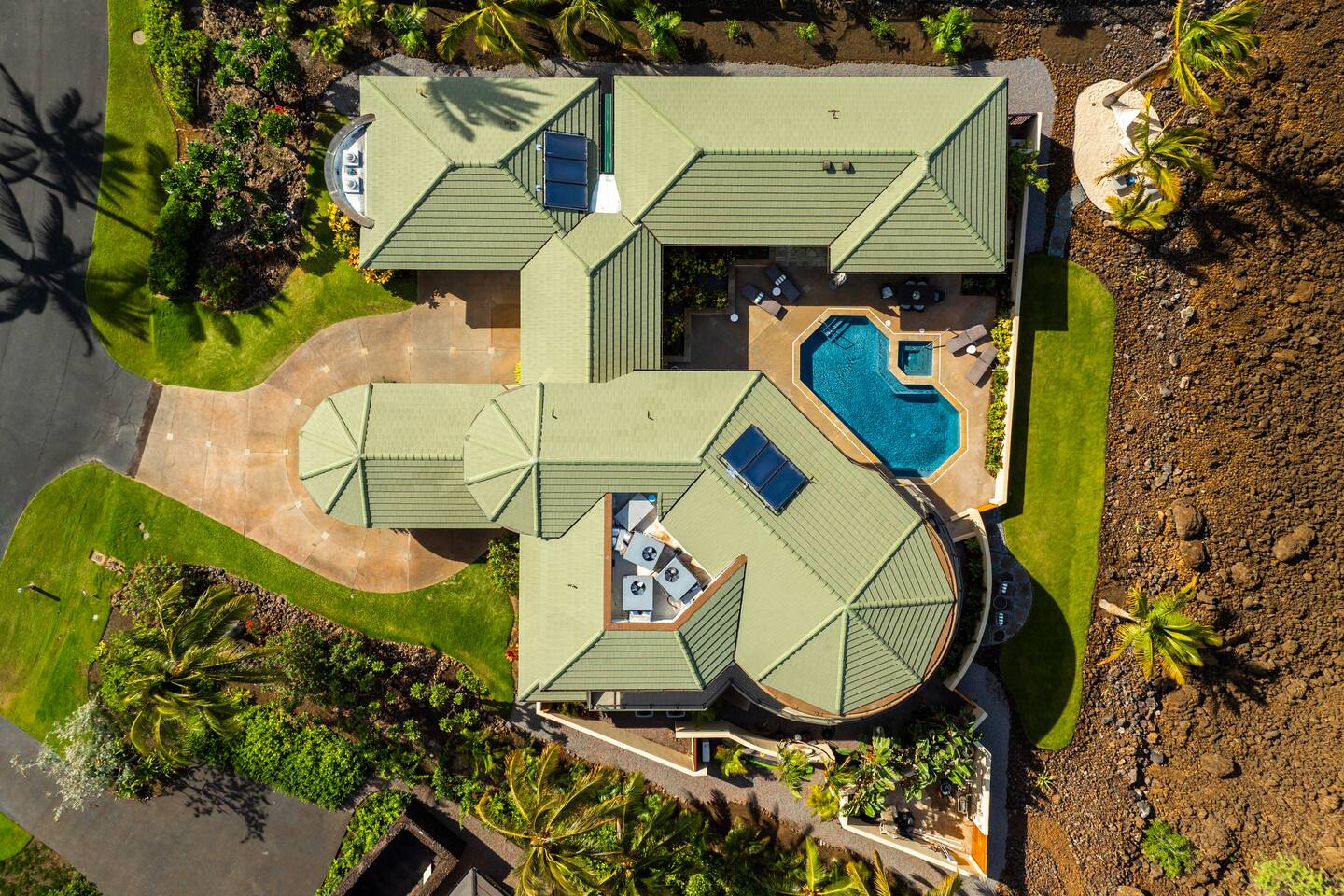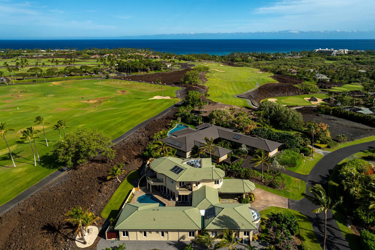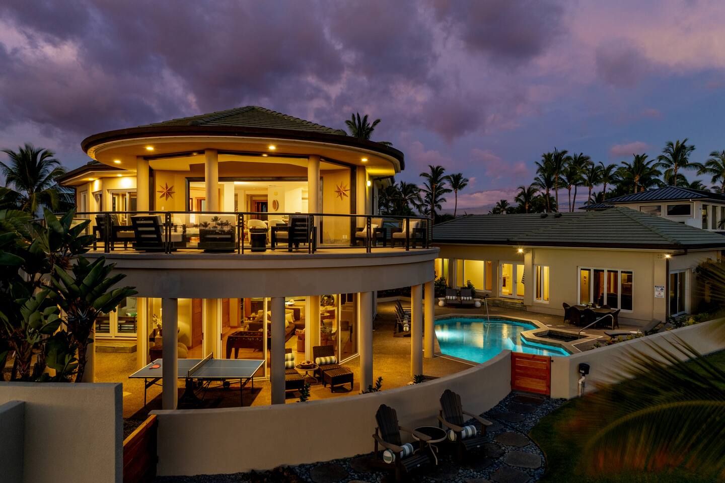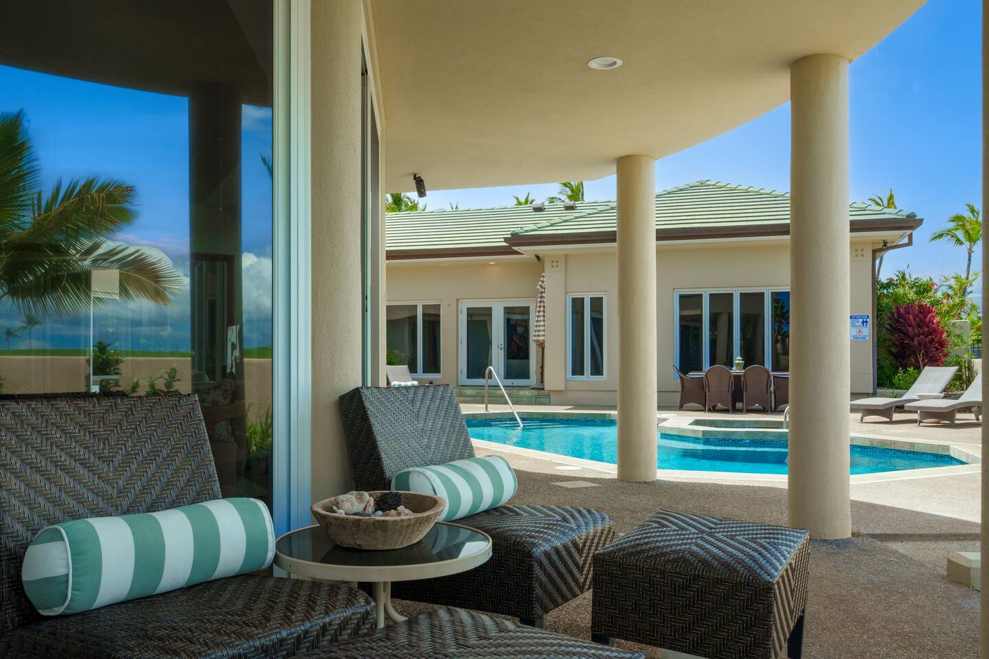 Welcome to Hale Mele 2 — A Private Island Retreat of Elegance and Comfort Discover the ultimate Hawaiian escape at Hale Mele 2, an elegant 5,100-square-foot, two-story luxury residence nestled within the prestigious Champion Ridge gated community on the Big Island’s South Kohala Gold Coast. With sweeping 270-degree views of lush golf courses and the majestic Mauna Kea volcano, this exceptional home blends refined sophistication with serene tropical ambiance — ideal for families or groups seeking an extraordinary island getaway. Property Highlights Thoughtfully designed with both relaxation and entertainment in mind, Hale Mele 2 offers: Five spacious bedrooms, four full bathrooms, one 3/4 bath, two half bathrooms. • Two primary suites each featuring a luxurious king-size mattress for restful, resort-quality comfort, one of which offers an additional daybed for a child. Both suites have a full bath with tub and shower. • A third bedroom with a king-size bed and 3/4 bath with shower. • A fourth bedroom with two queen-size beds and a full-size pullout sofa, ideal for families or groups traveling together. Full bath with tub and shower. • A second floor fifth bedroom with king-size bed and 1/2 bath. • A private deck with a heated pool, hot tub, and open-air balcony — perfect for savoring vivid Hawaiian sunsets • Meticulously landscaped half-acre grounds, offering peace, privacy, and beauty at every turn. Home Amenities • Air conditioning throughout the entire residence for your comfort. • Fully equipped kitchen, thoughtfully stocked with essentials including olive oil, vinegar, sea salt, pepper, and a curated selection of spices. • High-performance Vitamix blender, perfect for crafting smoothies and frozen cocktails. • Complimentary Kona coffee starter pack, a variety of teas, and local Hawaiian chocolates to welcome you. • Laundry essentials provided, including laundry pods and dryer sheets for your convenience. • Premium bath amenities in every bathroom, featuring shampoo, conditioner, and body wash. • Entertainment and leisure options abound, featuring Fubo TV, a foosball table, ping pong, Xbox, corn hole, and a premium Sonos sound system. • In home private workout room equipped with adjustable dumbbells (up to 52.5 lbs), a bench, yoga mats and pull-up bar • Infant-friendly amenities, including a Pack ‘n Play, high chair and infant tableware. Exclusive Guest Amenities Guests enjoy access to a well-appointed garage stocked with everything needed for a perfect day of island adventure, including: • Boogie boards, beach chairs, cooler, youth life jackets and sunshade. • A variety of beach and pool toys for children. • 6-seater and 4- seater electric golf cart, ideal for effortless exploration of the resort. • Two electric bikes and two traditional bicycle, complete with helmets and locks. • Privileged access to the Mauna Lani Beach Club grants entry to a private white-sand cove with complimentary lounge chairs, paddle board rentals, and beachfront dining at Napua Restaurant. This access does not include use of the hotel pools and other hotel amenities. Local Activities & Excursions Indulge in world-class recreation with nearby attractions, including: • Mauna Lani North & South golf courses (contact directly for tee times and rates). • Mauna Lani Tennis and Fitness Club, featuring tennis, pickleball, a lap pool, and fitness facilities (weekly rates: $300 per person / $600 per family). • Famed beaches such as Kua Bay, 49 Black Sand Beach, Hapuna, and Mauna Kea Beach. • Champion Ridge’s open green spaces, offering fresh fruit and herb picking. • Adventure experiences including: manta ray night dives, zip lining, fishing charters, snorkeling, helicopter tours, whale watching, hiking, and surf lessons. Personalized Concierge Services Enhance your stay with optional concierge services (available at an additional cost), including: • Private airport transfers • In-home spa treatments and manicures • Kitchen pre-stocking services • Private chef experiences Please note: weddings, receptions, and large gatherings are not permitted For safety, a discreet security camera monitors the driveway. Reserve Your Private Hawaiian Escape Experience Hawaiian luxury at Hale Mele 2, where every detail has been thoughtfully curated to create an unforgettable island retreat. Book your stay today and immerse yourself in the magic of the Big Island.