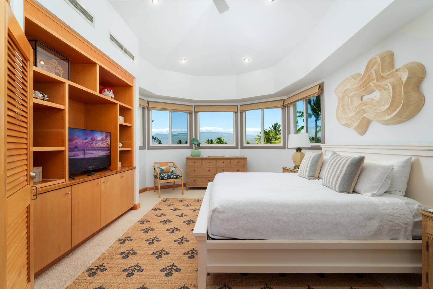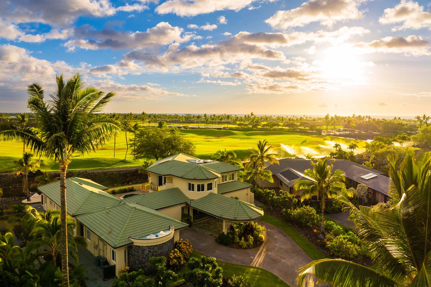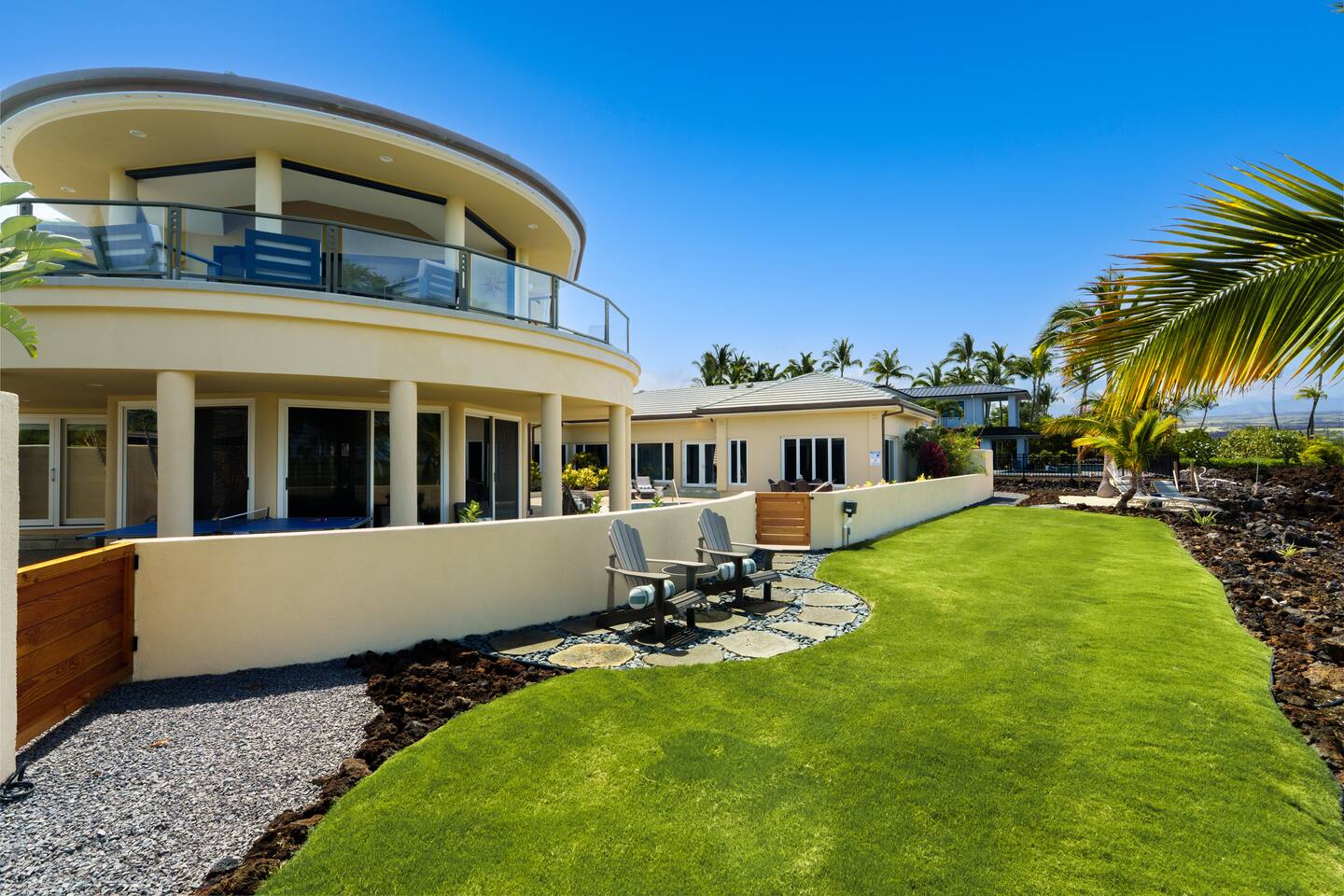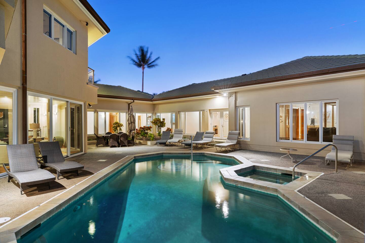 Welcome to Hale Mele 2 — A Private Island Retreat of Elegance and Comfort Discover the ultimate Hawaiian escape at Hale Mele 2, an elegant 5,100-square-foot, two-story luxury residence nestled within the prestigious Champion Ridge gated community on the Big Island’s South Kohala Gold Coast. With sweeping 270-degree views of lush golf courses and the majestic Mauna Kea volcano, this exceptional home blends refined sophistication with serene tropical ambiance — ideal for families or groups seeking an extraordinary island getaway. Property Highlights Thoughtfully designed with both relaxation and entertainment in mind, Hale Mele 2 offers: Five spacious bedrooms, four full bathrooms, one 3/4 bath, two half bathrooms. • Two primary suites each featuring a luxurious king-size mattress for restful, resort-quality comfort, one of which offers an additional daybed for a child. Both suites have a full bath with tub and shower. • A third bedroom with a king-size bed and 3/4 bath with shower. • A fourth bedroom with two queen-size beds and a full-size pullout sofa, ideal for families or groups traveling together. Full bath with tub and shower. • A second floor fifth bedroom with king-size bed and 1/2 bath. • A private deck with a heated pool, hot tub, and open-air balcony — perfect for savoring vivid Hawaiian sunsets • Meticulously landscaped half-acre grounds, offering peace, privacy, and beauty at every turn. Home Amenities • Air conditioning throughout the entire residence for your comfort. • Fully equipped kitchen, thoughtfully stocked with essentials including olive oil, vinegar, sea salt, pepper, and a curated selection of spices. • High-performance Vitamix blender, perfect for crafting smoothies and frozen cocktails. • Complimentary Kona coffee starter pack, a variety of teas, and local Hawaiian chocolates to welcome you. • Laundry essentials provided, including laundry pods and dryer sheets for your convenience. • Premium bath amenities in every bathroom, featuring shampoo, conditioner, and body wash. • Entertainment and leisure options abound, featuring Fubo TV, a foosball table, ping pong, Xbox, corn hole, and a premium Sonos sound system. • In home private workout room equipped with adjustable dumbbells (up to 52.5 lbs), a bench, yoga mats and pull-up bar • Infant-friendly amenities, including a Pack ‘n Play, high chair and infant tableware. Exclusive Guest Amenities Guests enjoy access to a well-appointed garage stocked with everything needed for a perfect day of island adventure, including: • Boogie boards, beach chairs, cooler, youth life jackets and sunshade. • A variety of beach and pool toys for children. • 6-seater and 4- seater electric golf cart, ideal for effortless exploration of the resort. • Two electric bikes and two traditional bicycle, complete with helmets and locks. • Privileged access to the Mauna Lani Beach Club grants entry to a private white-sand cove with complimentary lounge chairs, paddle board rentals, and beachfront dining at Napua Restaurant. This access does not include use of the hotel pools and other hotel amenities. Local Activities & Excursions Indulge in world-class recreation with nearby attractions, including: • Mauna Lani North & South golf courses (contact directly for tee times and rates). • Mauna Lani Tennis and Fitness Club, featuring tennis, pickleball, a lap pool, and fitness facilities (weekly rates: $300 per person / $600 per family). • Famed beaches such as Kua Bay, 49 Black Sand Beach, Hapuna, and Mauna Kea Beach. • Champion Ridge’s open green spaces, offering fresh fruit and herb picking. • Adventure experiences including: manta ray night dives, zip lining, fishing charters, snorkeling, helicopter tours, whale watching, hiking, and surf lessons. Personalized Concierge Services Enhance your stay with optional concierge services (available at an additional cost), including: • Private airport transfers • In-home spa treatments and manicures • Kitchen pre-stocking services • Private chef experiences Please note: weddings, receptions, and large gatherings are not permitted For safety, a discreet security camera monitors the driveway. Reserve Your Private Hawaiian Escape Experience Hawaiian luxury at Hale Mele 2, where every detail has been thoughtfully curated to create an unforgettable island retreat. Book your stay today and immerse yourself in the magic of the Big Island.