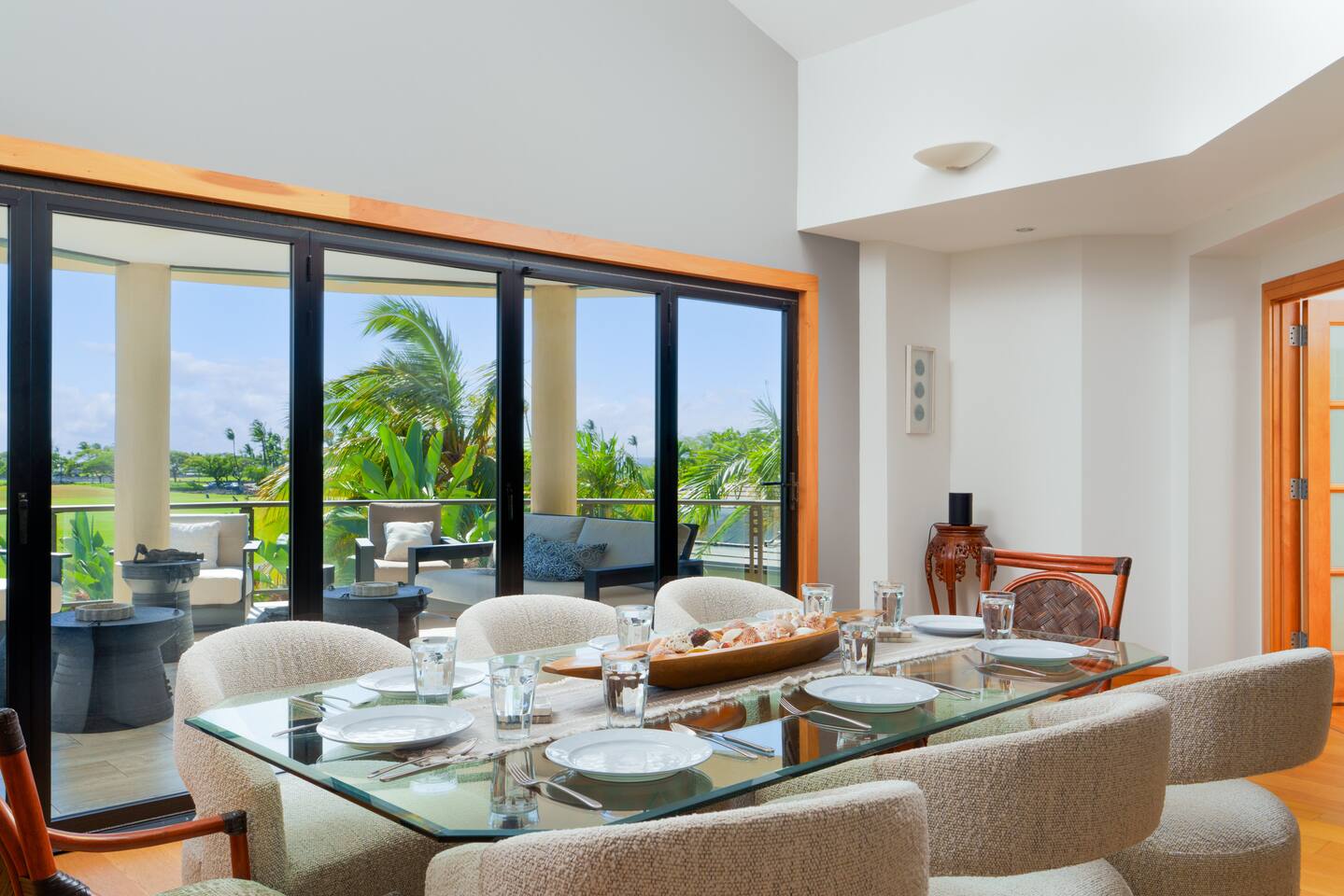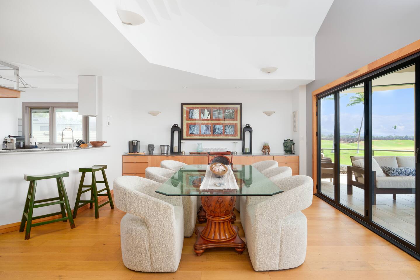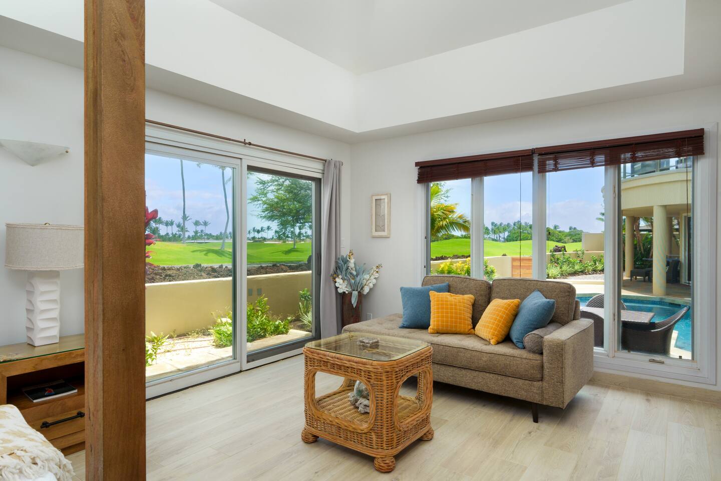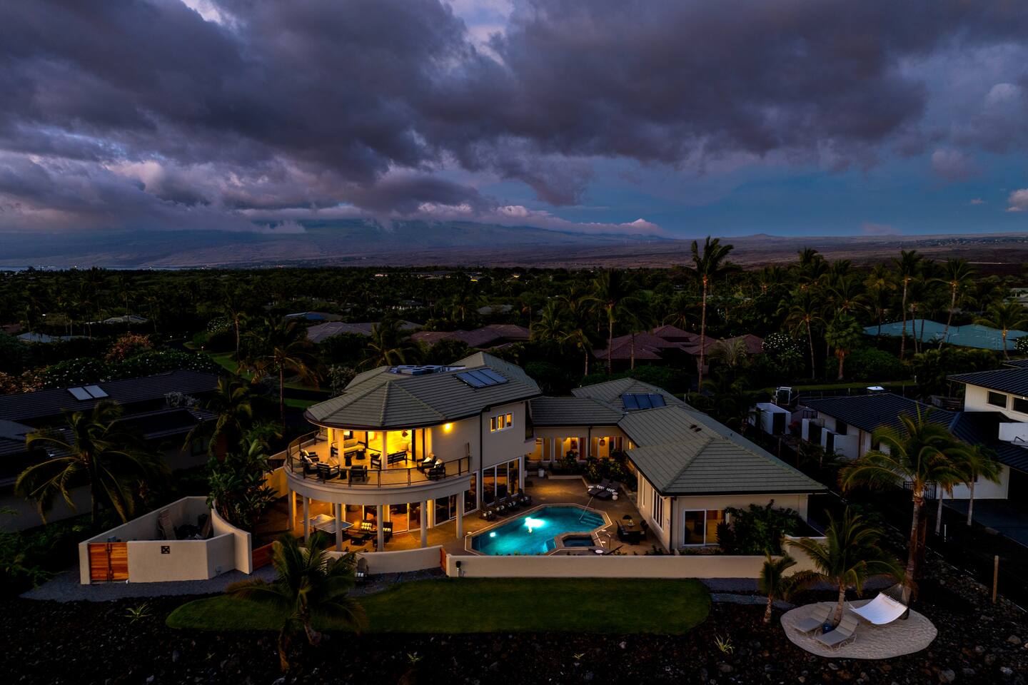 For larger groups or multi-family gatherings, consider booking Hale Mele Polynesian Pod Style , a stunning one story residence located just four homes away at 68-110 E. Pukaua Pl. This spacious home accommodates up to 10 guests and offers sweeping volcano views, plus complimentary use of a 6-seater golf cart and 2 E-bikes. View Hale Mele Polynesian Pod Style on direct booking website at: www.halemele.com