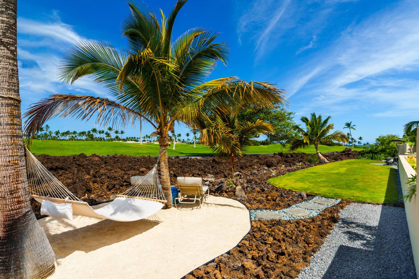 Champion Ridge is an exclusive, private gated community located within the prestigious Mauna Lani Resort area. Your stay includes private access to the Mauna Lani Beach Club, where you can relax at a beautiful white-sand beach cove with calm, clear ocean waters. Enjoy complimentary lounge chairs and convenient beach rental options. The resort area also offers exceptional dining, world-class golf and tennis, scenic hiking trails, snorkeling, and a wide range of island activities for you to experience and enjoy.